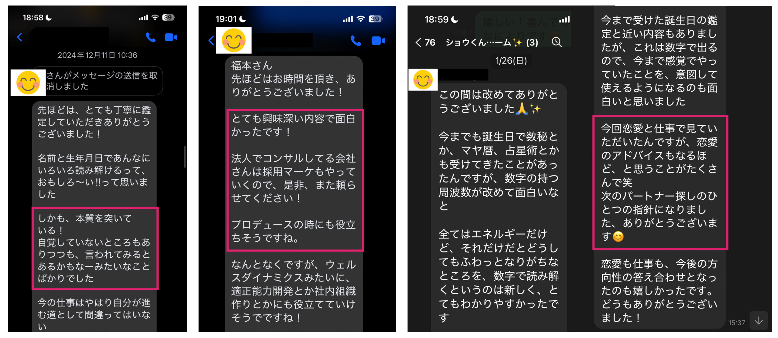 過去に受けてくださった方々からは、このようなご感想をいただいたり…
